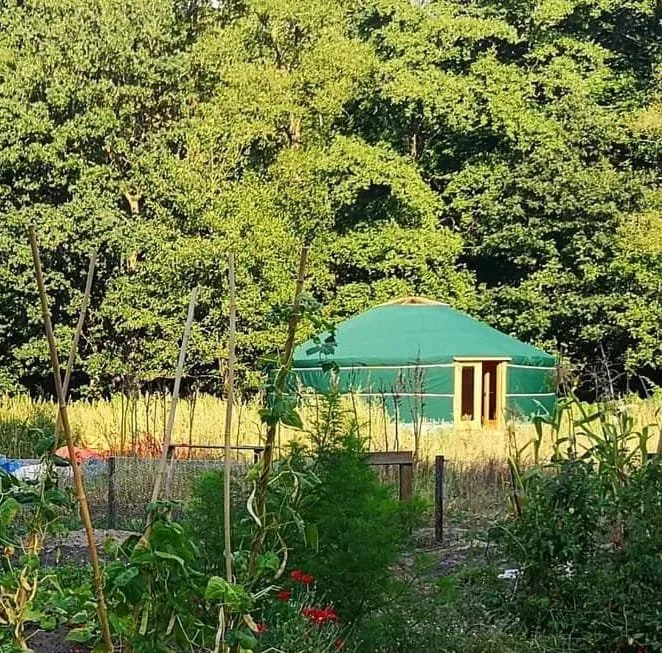 Deze prachtige groene yurt is groot en voornamelijk leeg en daardoor heel erg geschikt voor het geven van workshops, retraites, cursussen etc. De yurt is omgeven door een meidoornhaag (in aangroei) en daardoor energetisch afgezonderd van de rest van het veld. Het is echt een eigen wereld waar je hier in stapt.